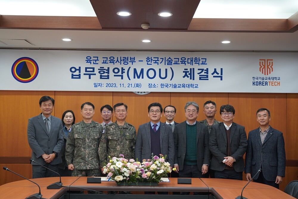 [대학저널 온종림 기자] 한국기술교육대학교가 21일 대학 중회의실에서 육군교육사령부와 교육훈련 및 군사과학기술 등의 공동 발전을 위한 원활한 협력을 골자로 업무협약을 체결했다.