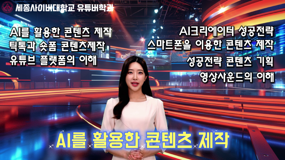 세종사이버대 유튜버학과의 2025년 교육과정 소개는 AI 가상인간의 교육과정 소개로 진행됐고 수업에 대한 정보와 담당 교수의 소개로 이뤄져 독특하고 흥미로운 교육과정을 통해 학생들에게 전달됐다.