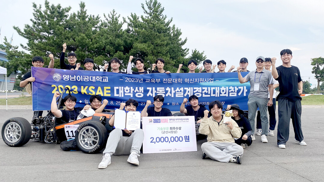 [대학저널 조영훈 기자] 영남이공대학교는 스마트융합기계계열 학생들이 ‘2023 KSAE 대학생 자작자동차대회’에서 기술부문 최우수상을 수상했다고 29일 밝혔다.