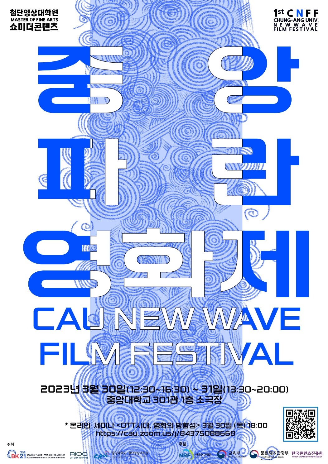 중앙대 301관 소극장에서 열리는 영화제는 중앙대 첨단영상대학원 주관, BK21 인공지능-콘텐츠 미래산업 교육연구단과 OTT콘텐츠 특성화 사업단 공동 주최로 열린다.