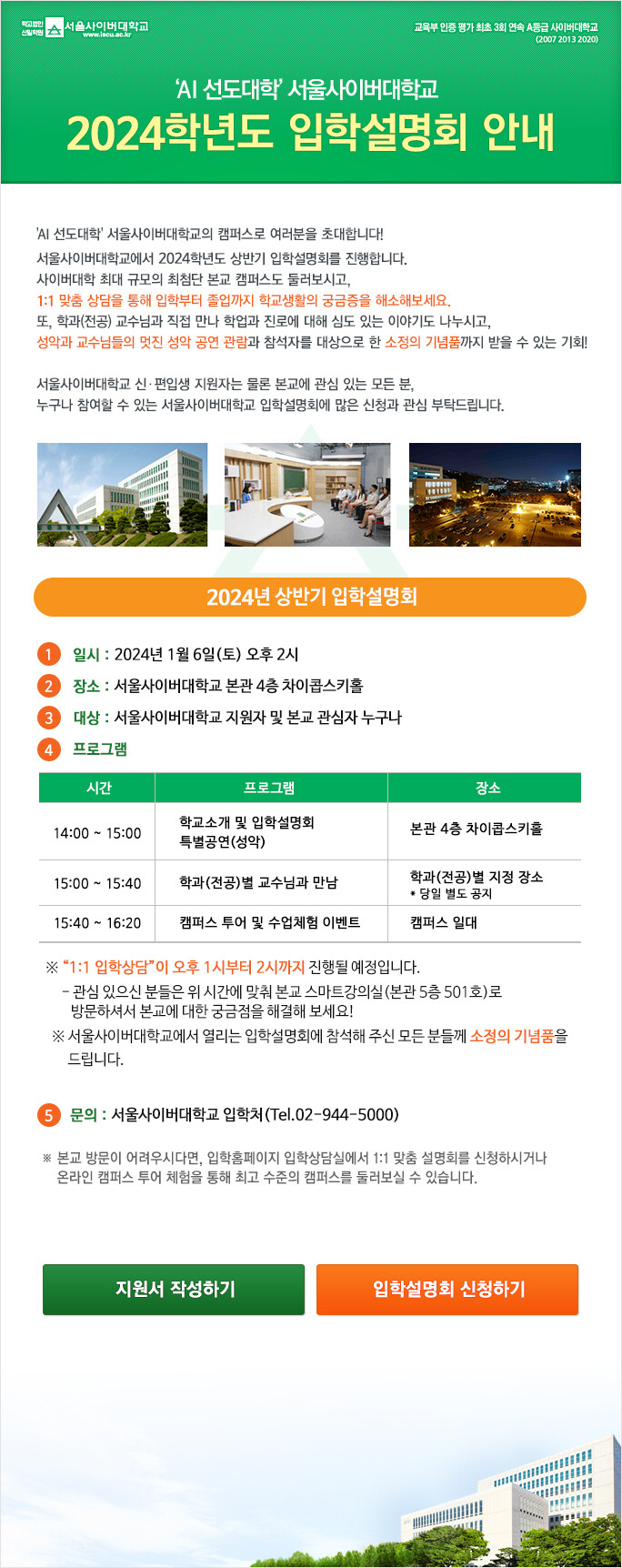 또한 서울사이버대는 입학지원자들의 편의를 위해 1:1 맞춤 설명회를 상시 운영하고 있다.
