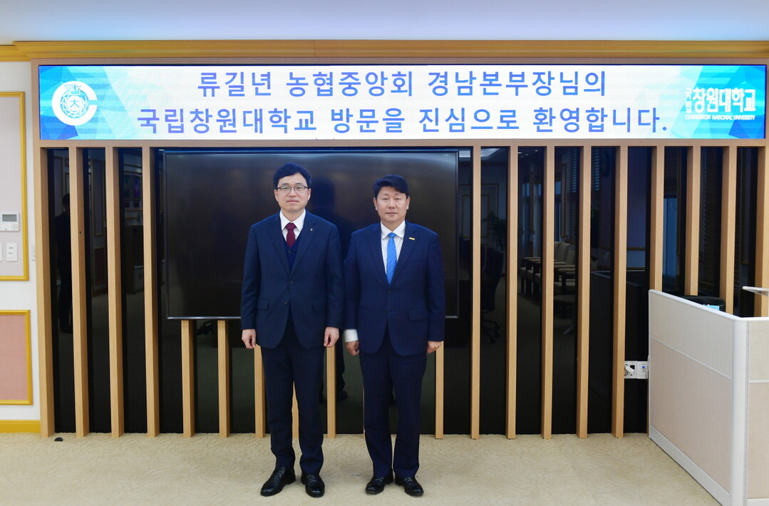 [대학저널 이선용 기자] 국립창원대학교는 류길년 경남농협 본부장이 국립창원대를 방문, 대학본부에서 박민원 총장과 양 기관-지역사회 지속가능한 동반성장을 위한 협력방안 등에 대한 간담회를 가졌다고 7일 밝혔다.