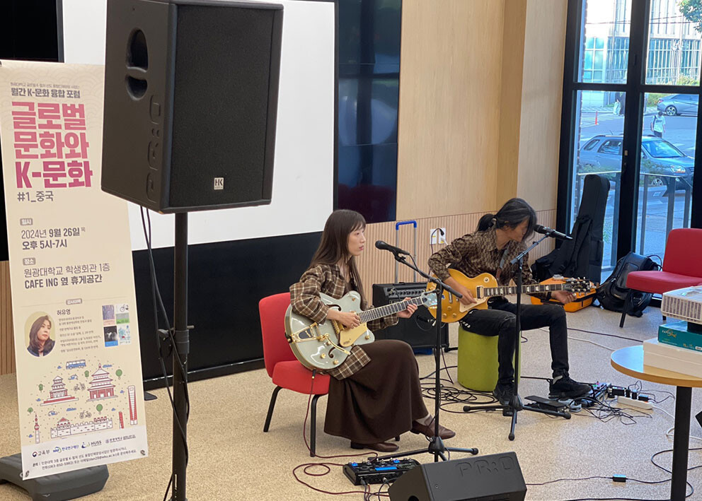 ‘월간 K-문화 융합포럼’은 매월 운영하는 비교과 프로그램으로, 지난달에는 중국 SF 소설가 류츠신의 ‘삼체’를 한국어로 번역한 허유영 작가 강연과 더불어 음악그룹 무아의 소규모 공연이 열렸으며, 50여 명의 학생이 참여했다.