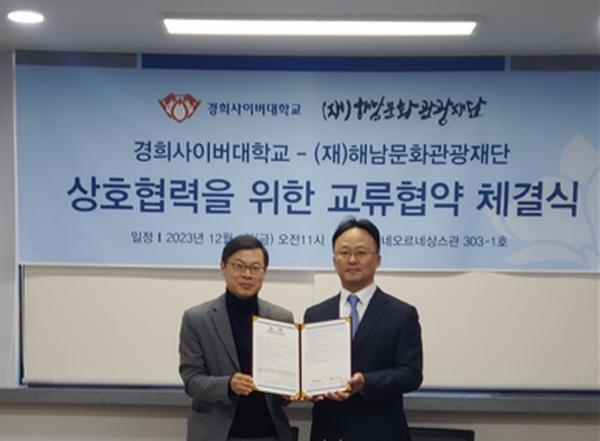 [대학저널 이선용 기자] 경희사이버대학교가 지난 12월 1일 네오르네상스관에서 (재)해남문화관광재단과 양 기관 ‘상호협력을 위한 교류협약’ 체결식을 진행했다.