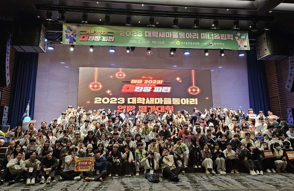 새마을운동중앙회 주관으로 작년 12월 27일부터 이틀간 천안 소노벨에서 열린 ‘2023년 대학 새마을동아리 연말 평가대회’는 전국의 64개 대학 새마을동아리가 화합과 우정을 다지며 2023년 한 해 동안 활동한 사례 발표를 통해 우수 동아리를 발굴하고 포상하는 자리였다.