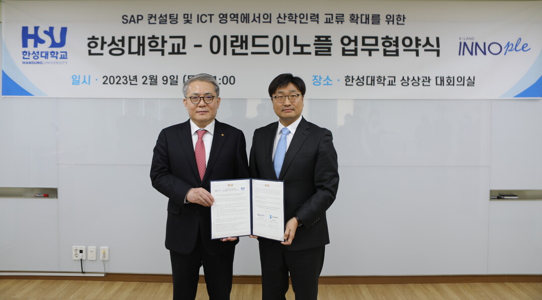 한성대와 이랜드이노플은 협약을 통해 ▲SAP 및 ICT 관련 인력 양성을 위한 대학생 대상 교육과정 공동 개발 ▲한성대의 현장실습 기관으로 참여 ▲SAP 및 ICT 관련 교육을 이수한 학생의 취업에 적극 협조 ▲SAP 및 ICT 관련 기업연계교육 참여 ▲이랜드이노플에서 요구하는 교육내용을 교육과정 및 교과목에 반영 등 산업현장에 필요한 전문기술 인력양성 구축에 대한 상호협력을 추진하기로 했다.