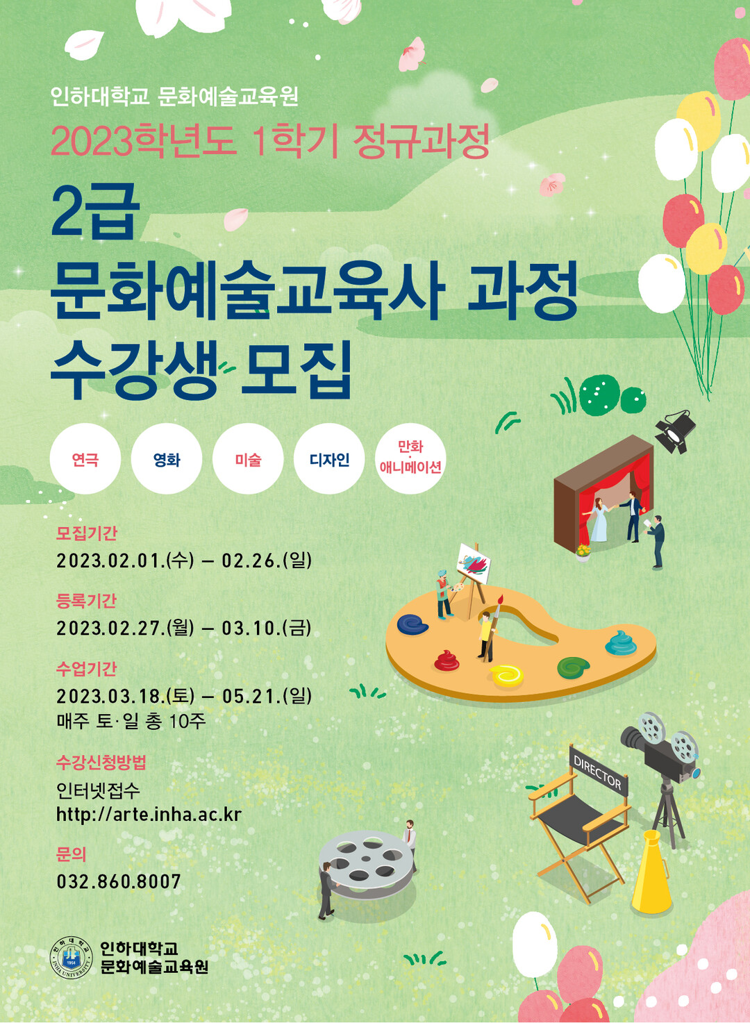 | 인하대, 문화예술교육사 2023학년도 1학기 정규과정 수강생 모집 안내 포스터. 자료=인하대학교 |