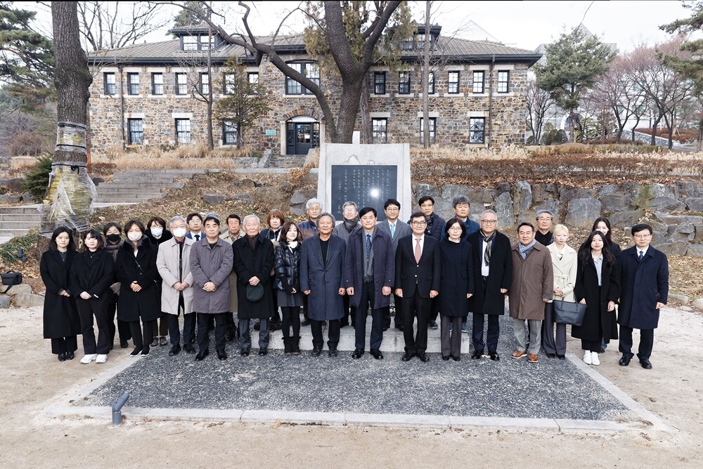 지난 16일 연세대 윤동주기념사업회가 주관한 윤동주 시인 추모식에서 참석자들이 포즈를 취하고 있다. 사진=연세대 제공 |