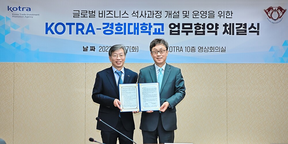 [대학저널 온종림 기자] 경희대학교는 지난 7일 대한무역투자진흥공사(KOTRA)와 국제통상과 투자 인력 양성을 위한 상호협력 업무협약을 체결했다고 8일 밝혔다.