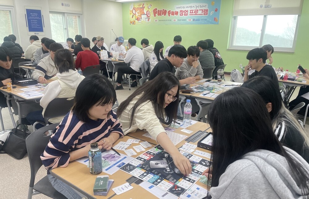 [대학저널 온종림 기자] 경동대학교는 지난 3일 경기도 양주 메트롤캠퍼스에서 ‘2024 Fun Fun 창업 프로그램’을 진행했다. 경동대 취업사관교육센터가 마련한 이 프로그램에는 창업에 관심을 보인 학생 40명이 4명씩 모두 10개의 팀을 이뤄 참여했다.