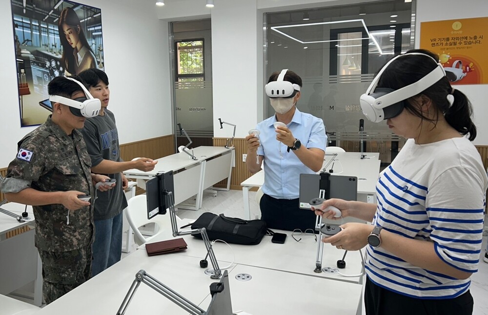 상무대 관계자는 AI에듀테크센터 기술로 만든 소개 영상을 시청한 뒤 VR기기 체험 및 각 강의실 시설을 둘러봤다.