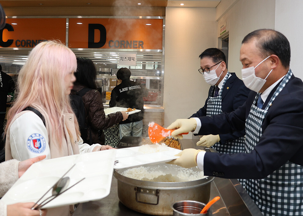 [대학저널 이선용 기자] 원광대학교는 농협중앙회 전북본부로부터 쌀 5천 킬로그램을 지원받아 양 기관 관계자들이 참석한 가운데 12일 학생회관 식당에서 학생들에게 아침밥을 배식하고, 대학 본관 회의실에서 기증식을 진행했다고 밝혔다.