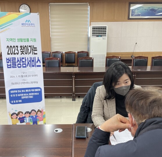 전남대 리걸클리닉센터는 전남대 법학전문대학원 출신으로 법무법인 법승(광주 소재)에서 활동 중인 송지영, 임대현 두 변호사의 도움을 받아 1월 15일 완도 신지면에서 지역민 무료 법률상담에 나섰다.
