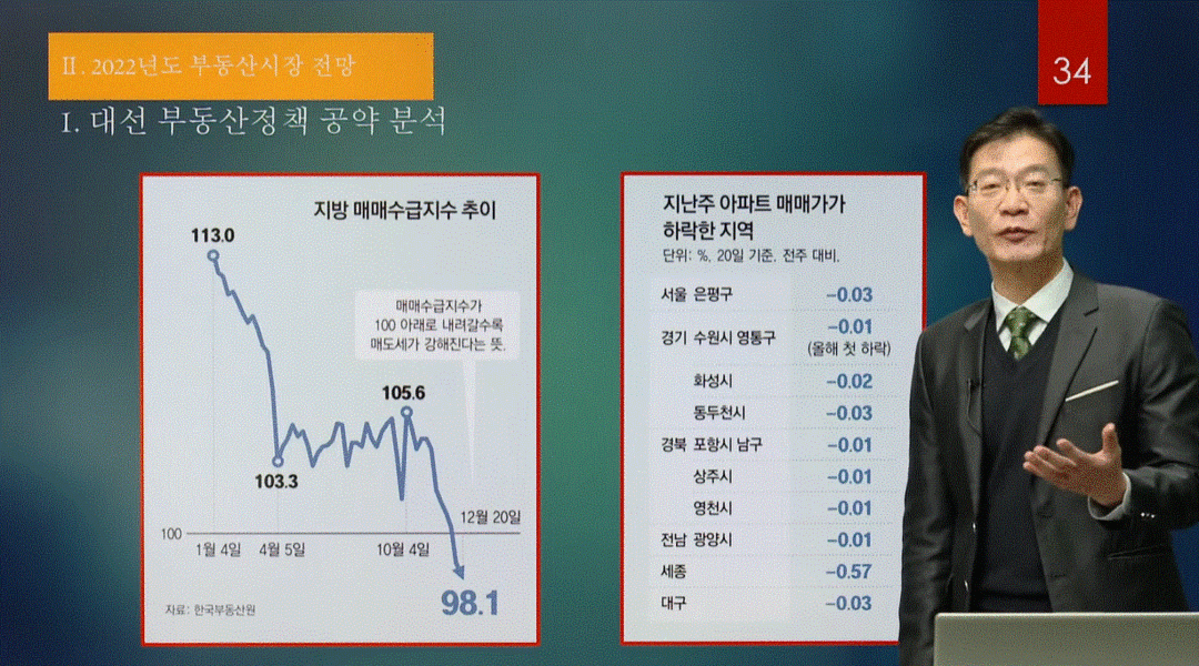 김용진 교수의 2022년도 부동산시장 전망 관련 강의 모습. 사진=서울사이버대 제공 |