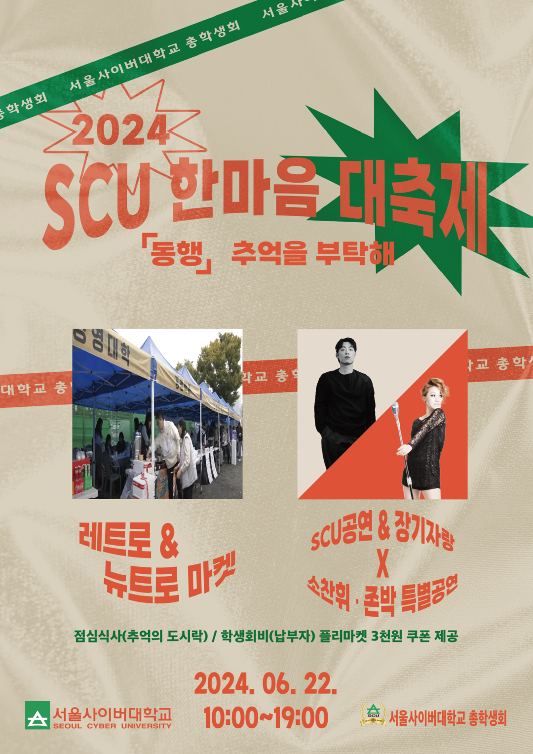 이번에 개최되는 ‘2024 SCU 한마음 대축제’는 서울사이버대 제24대 총학생회 주최로, 6월 22일 오전 10시부터 오후 7시까지 서울사이버대 신일캠퍼스 운동장에서 진행된다.