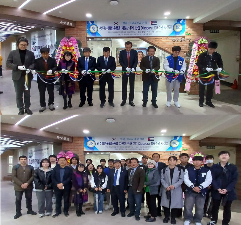 [대학저널 이선용 기자] 전남대학교 민주주의와 공동체연구소가 주최한 한국과 쿠바 수교 기념 및 광주학생독립운동을 지원한 쿠바 한인 디아스포라 103주년 사진전과 특강이 3월 25일과 26일 전남대 사회대 윤상원홀에서 열렸다.
