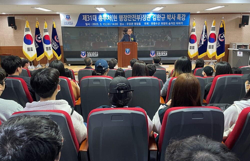 [대학저널 온종림 기자] 경동대학교는 지난 15일 김영삼정부 시절 총무처 장관을 지낸 21세기한중교류협회 김한규 회장을 초청해 특강을 했다고 17일 밝혔다.
