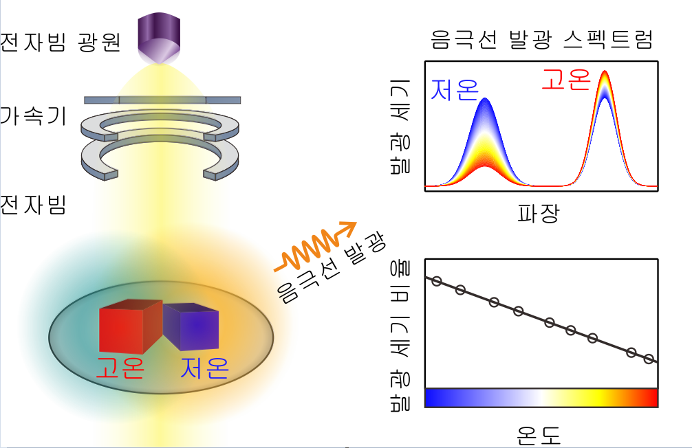 UNIST 화학과 권오훈 교수팀은 음극선 발광(cathodoluminescence, CL) 분광 기법을 통해 투과 전자 현미경 내에서 나노미터 크기를 가진 시료의 온도를 측정할 수 있는 기술인 ‘나노온도계’를 개발했다.