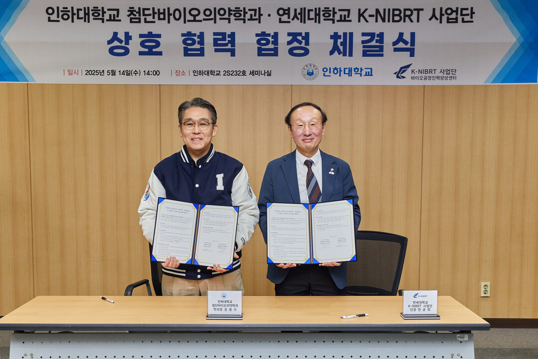 [대학저널 이선용 기자] 인하대학교는 최근 연세대학교 K-NIBRT 사업단과 첨단바이오의약품 분야 글로벌 인재 양성·전문 역량 강화를 위한 업무협약을 체결했다고 19일 밝혔다.