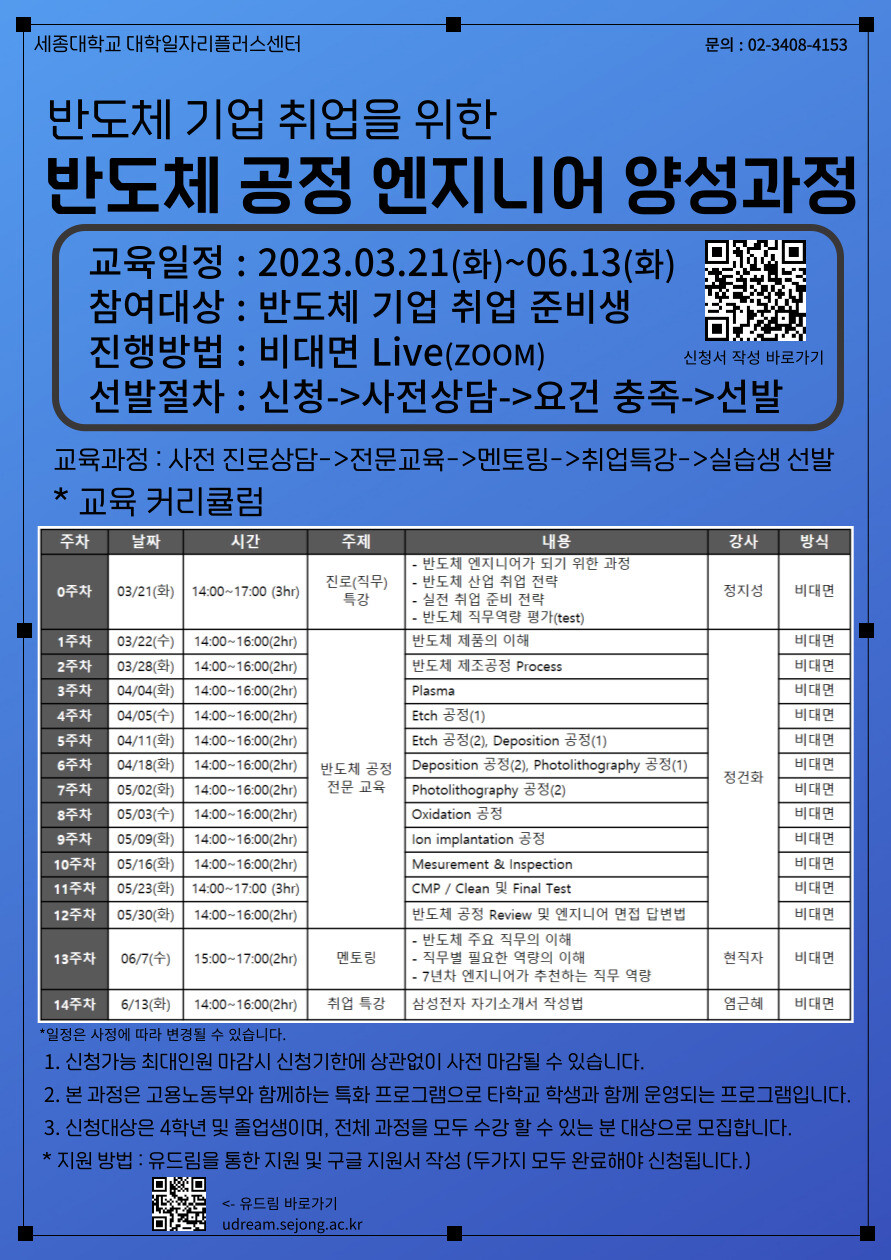 자세한 내용은 세종대 대학일자리플러스센터로 문의하면 된다.