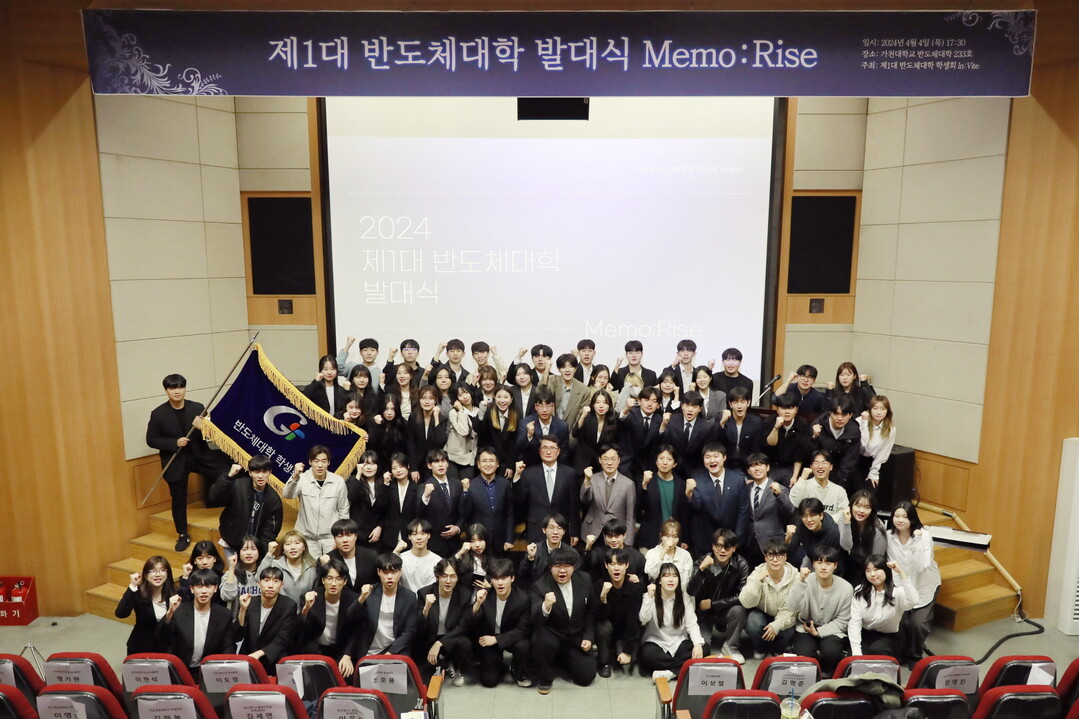 [대학저널 이선용 기자] 가천대학교가 세계 최초로 개설한 반도체대학 첫 출범식이 4일 반도체대학 233호실에서 개최됐다.