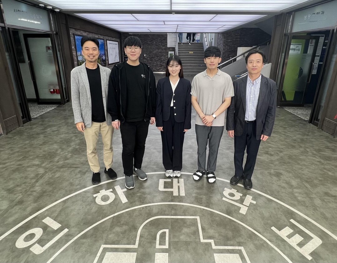 왼쪽부터 전태준 인하대 생명공학과 교수, 인하대 바이오시스템융합학과 조건호·이드보라·송서윤 대학원생, 김선민 인하대 기계공학과 교수. |
