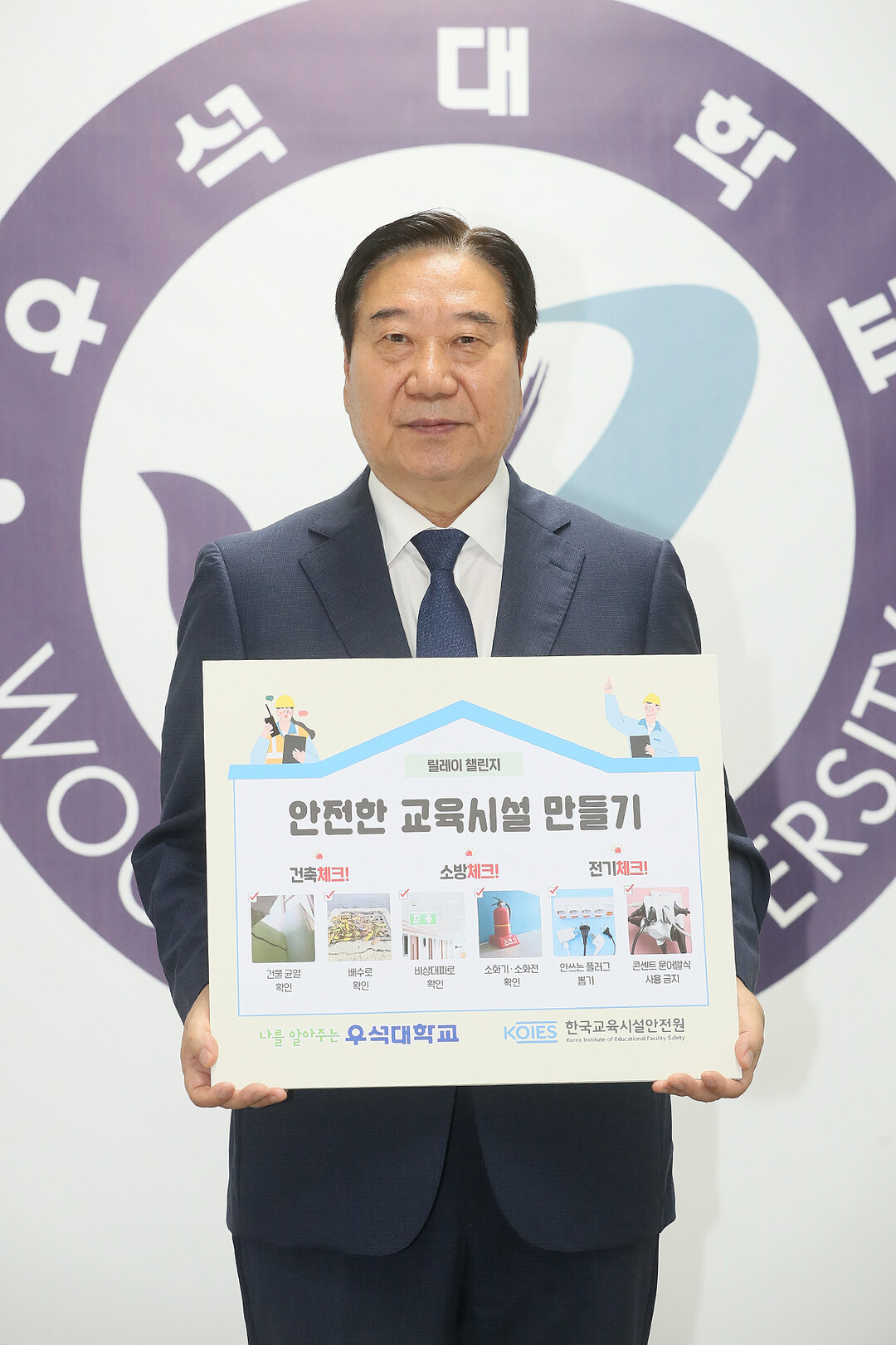 남천현 우석대 총장이 1일 ‘안전한 교육시설 만들기 캠페인’에 동참했다. 사진=우석대 제공 |