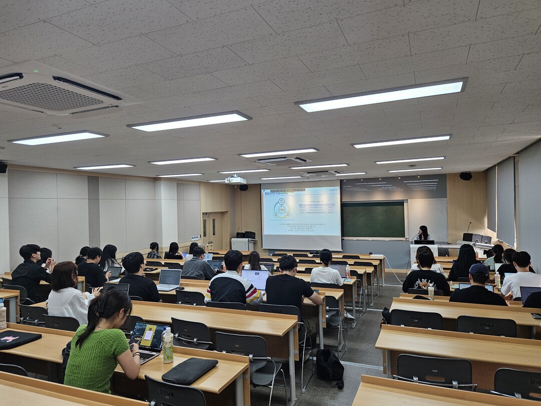 인하대 GTEP 사업단 단원들이 KOTRA 협업 DX(디지털 전환) 수출역량 강화 설명회를 듣고 있다. 사진=인하대 제공 |