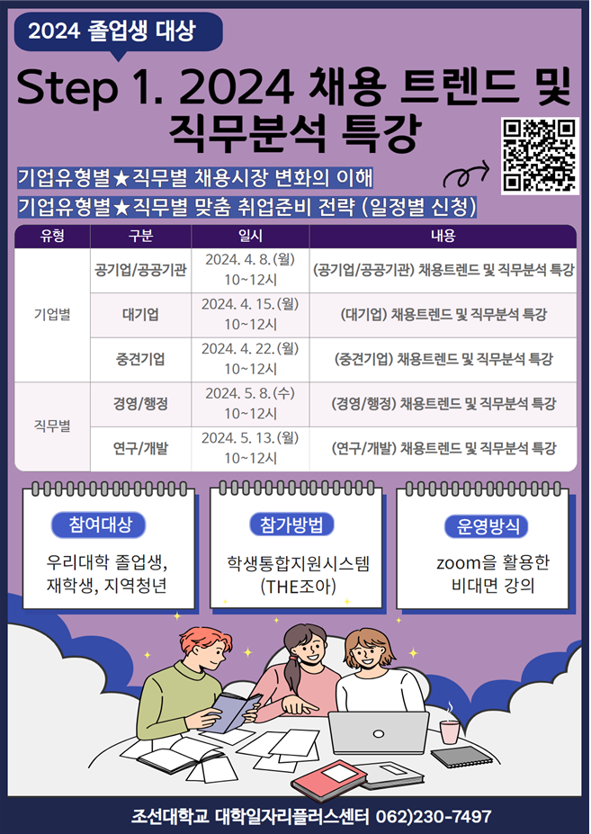 [대학저널 이선용 기자] 조선대학교 대학일자리플러스센터가 졸업생들의 성공취업을 위해 ‘졸업생 대상 특별 프로그램’을 4월 8일부터 5월 17일까지 단계적으로 제공한다.