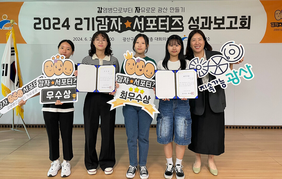 성과발표회에 참석한 호남대 간호학과 장윤경 교수는 “광산구의 감자서포터즈 활동은 지역사회 건강증진을 위한 관·학 협력의 가치와 가능성을 보여준 의미 있는 모델이라 생각하며, 근거를 기반으로 학습하고 다양한 주제와 형태로 창의적인 감염병 예방 활동을 진행한 대학생 서포터즈들과 학생들의 활동을 기획하고 지원해 준 광산구 보건소 감염병관리과의 노고에 감사를 드린다”며 “앞으로도 대학과 지자체가 지역사회 건강증진을 위한 활동을 더욱 활발하게 펼쳐 갈 수 있도록 협력하겠다”고 밝혔다.