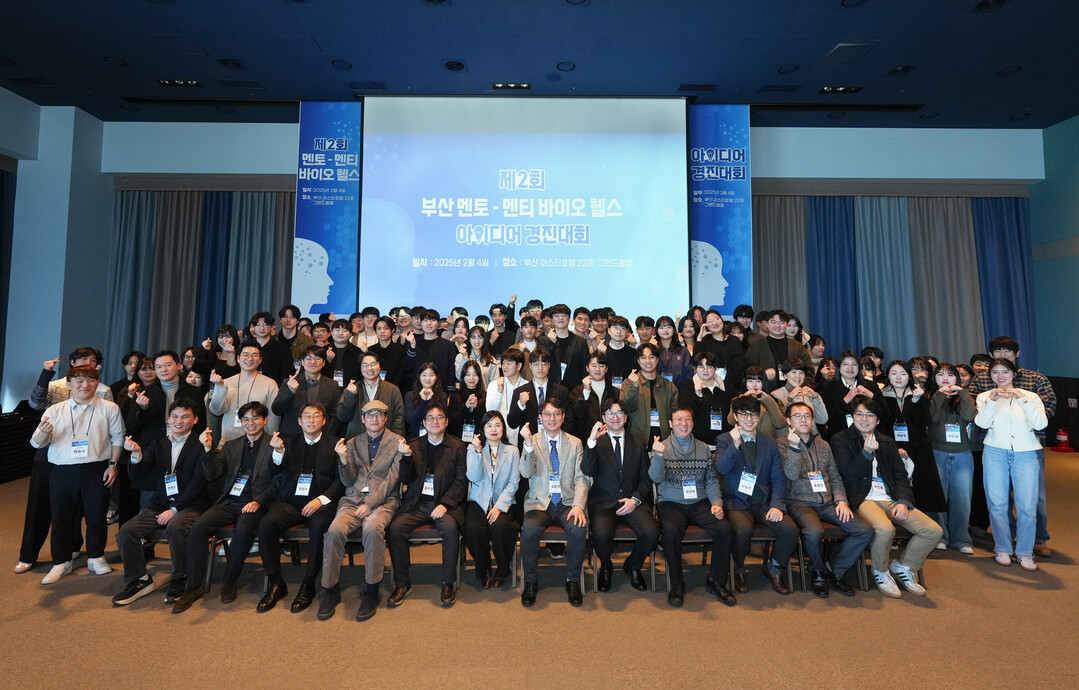 제2회 부산 멘토-멘티 바이오헬스 아이디어 경진대회 참석자들이 기념촬영을 하고 있다. 사진=부산대 제공 |
