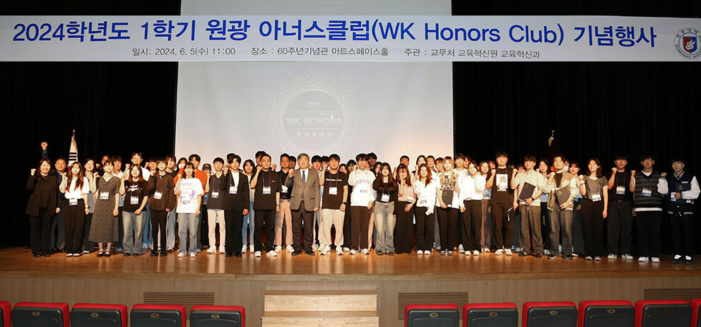 [대학저널 이선용 기자] 원광대학교는 우수 인재 발굴 및 지원을 위한 프로그램인 원광 아너스클럽(WK Horors Club) 기념식 및 특강을 지난 5일 교내 60주년기념관 아트스페이스홀에서 진행했다.