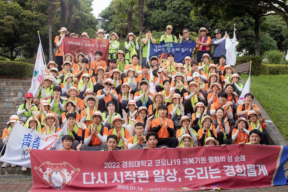경희대가11일부터 16일까지 ‘경희 74주년 기념 탄소중립 평화의 섬 프로젝트 줍깅(plogging)’을 진행한다. 사진은 지난해 ‘평화의 섬 순례’ 당시 모습. 사진=경희대 제공 |