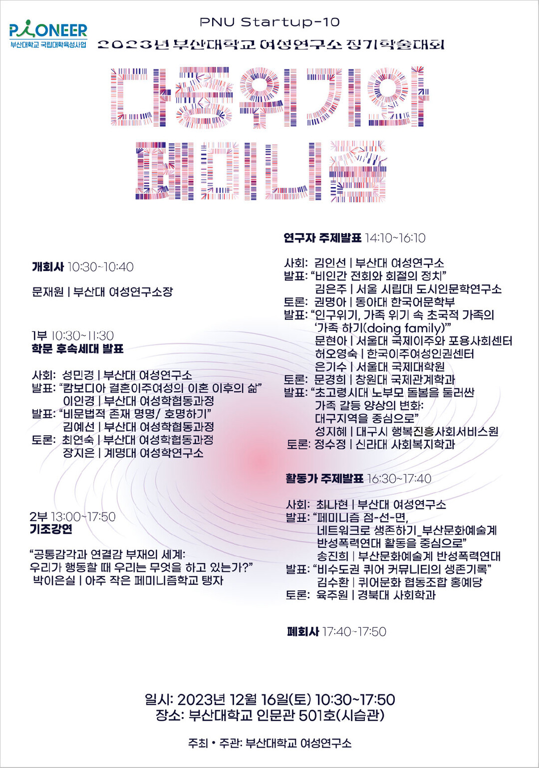 [대학저널 이선용 기자] 부산대학교 여성연구소가 ‘2023년 부산대학교 여성연구소 정기학술대회’를 개최한다.