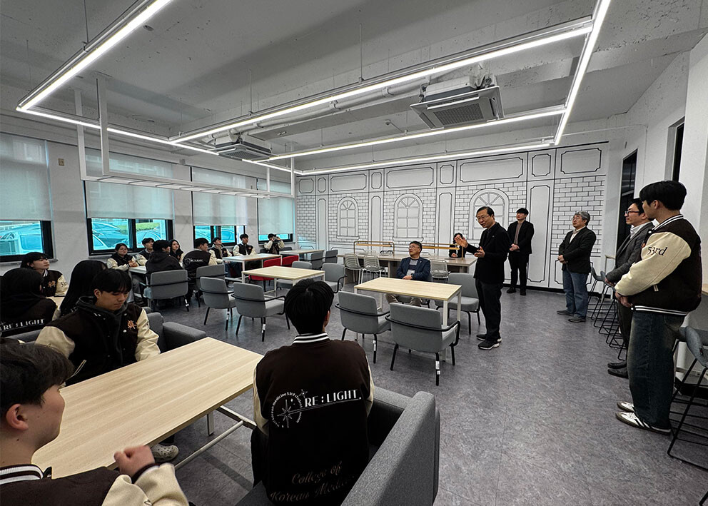 기존 학생휴게실의 냉난방 시설을 보완하고, 방음 시설과 회의 및 연구 활동에 필요한 최신 기자재를 구축해 쾌적한 스터디 공간으로 탈바꿈된 이 카페는 학생 만족도가 높아 다양한 프로젝트를 통한 학문역량 향상이 기대되고 있다.