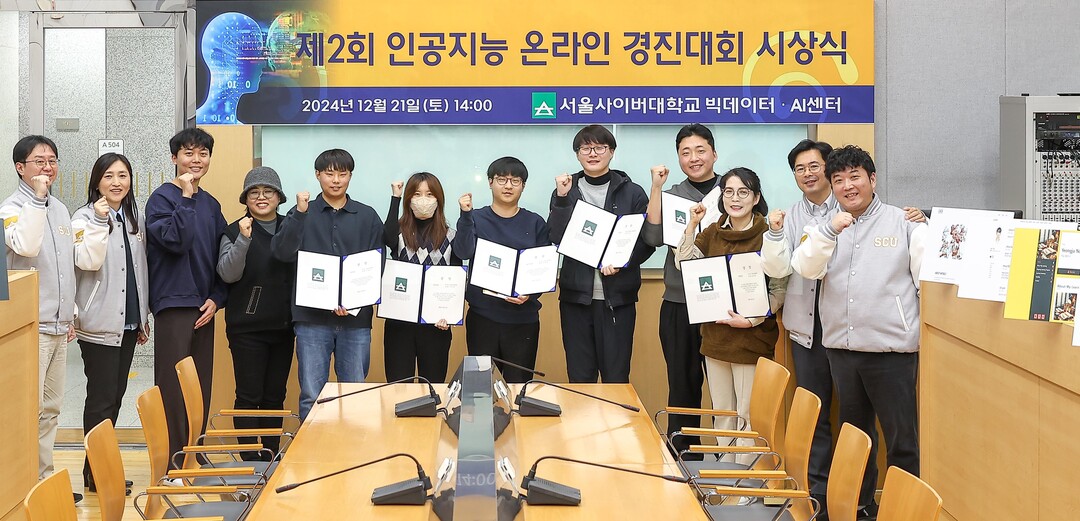 [대학저널 이선용 기자] 서울사이버대학교가 ‘제2회 인공지능 온라인 경진대회’가 진행히고 시상식을 가졌다. 경진대회는 서울사이버대 빅데이터·AI센터가 주관했으며, 빅데이터·정보보호학과와 인공지능학과가 협력하여 개최했다.