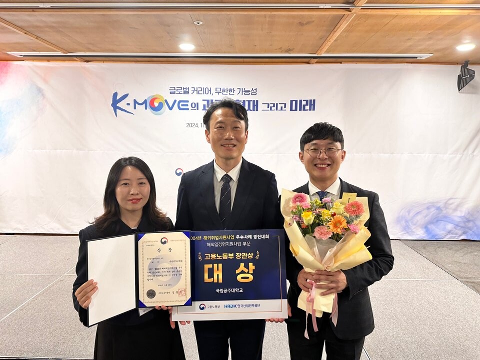 [대학저널 온종림 기자] 국립공주대학교가 고용노동부와 한국산업인력공단이 개최한‘2024년 해외취업지원사업 우수사례 경진대회’에서 고용노동부 장관상 대상을 수상했다.