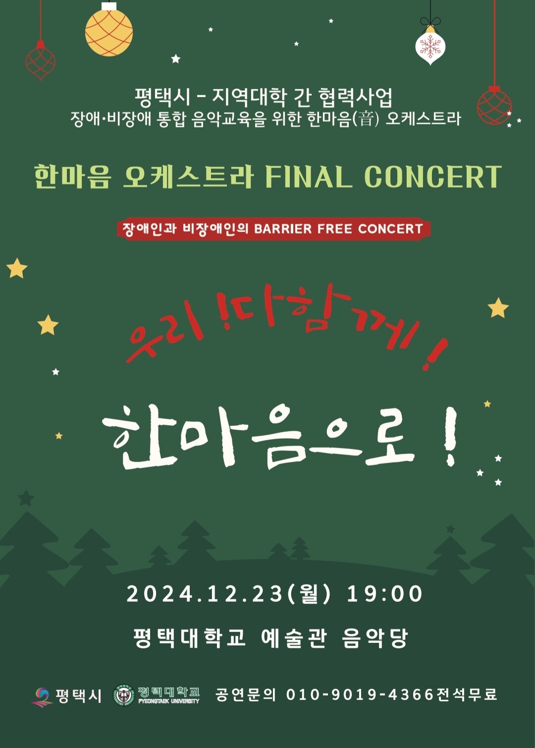 이번 콘서트는 '우리! 다함께! 한마음으로'라는 제목으로 23일 오후 7시 평택대 예술관에서 전석 무료로 열린다.
