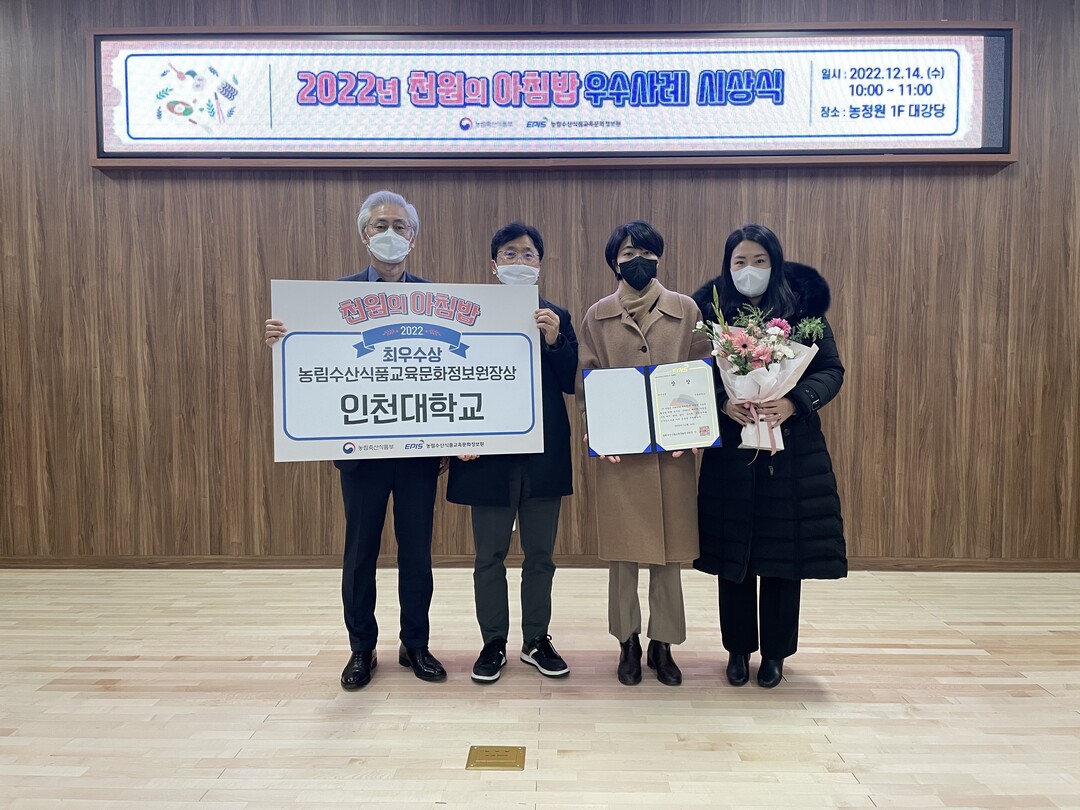 [대학저널 온종림 기자]인천대학교는 '2022 천원의 아침밥 사업'이 농림축산식품부와 농림수산식품교육문화정보원의 대학교 우수사례 최우수상을 받았다고 19일 밝혔다.