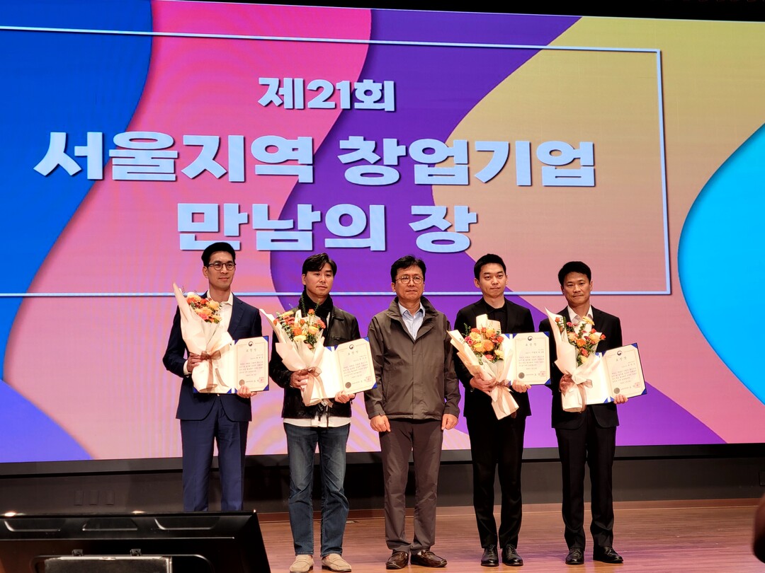 주식회사 펄스애드의 최세윤CTO(왼쪽에서 두 번째)가 ‘제21회 서울지역 창업기업 만남의 장’ 행사에서 주식회사 펄스애드가 중소벤처기업부장관상 수상 후 기념사진을 촬영하고 있다. |