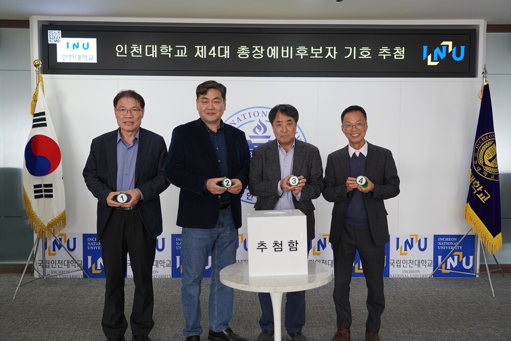 선정된 총장예비후보자를 대상으로 실시한 기호추첨 결과 기호 1번 최병길 (인천대 도시환경공학부 교수), 기호 2번 이인재(인천대 경제학과 교수), 기호 3번 강현철(인천대학교 명예교수), 기호 4번 임경환(인천대 생명과학부 교수) 순으로 결정됐다.