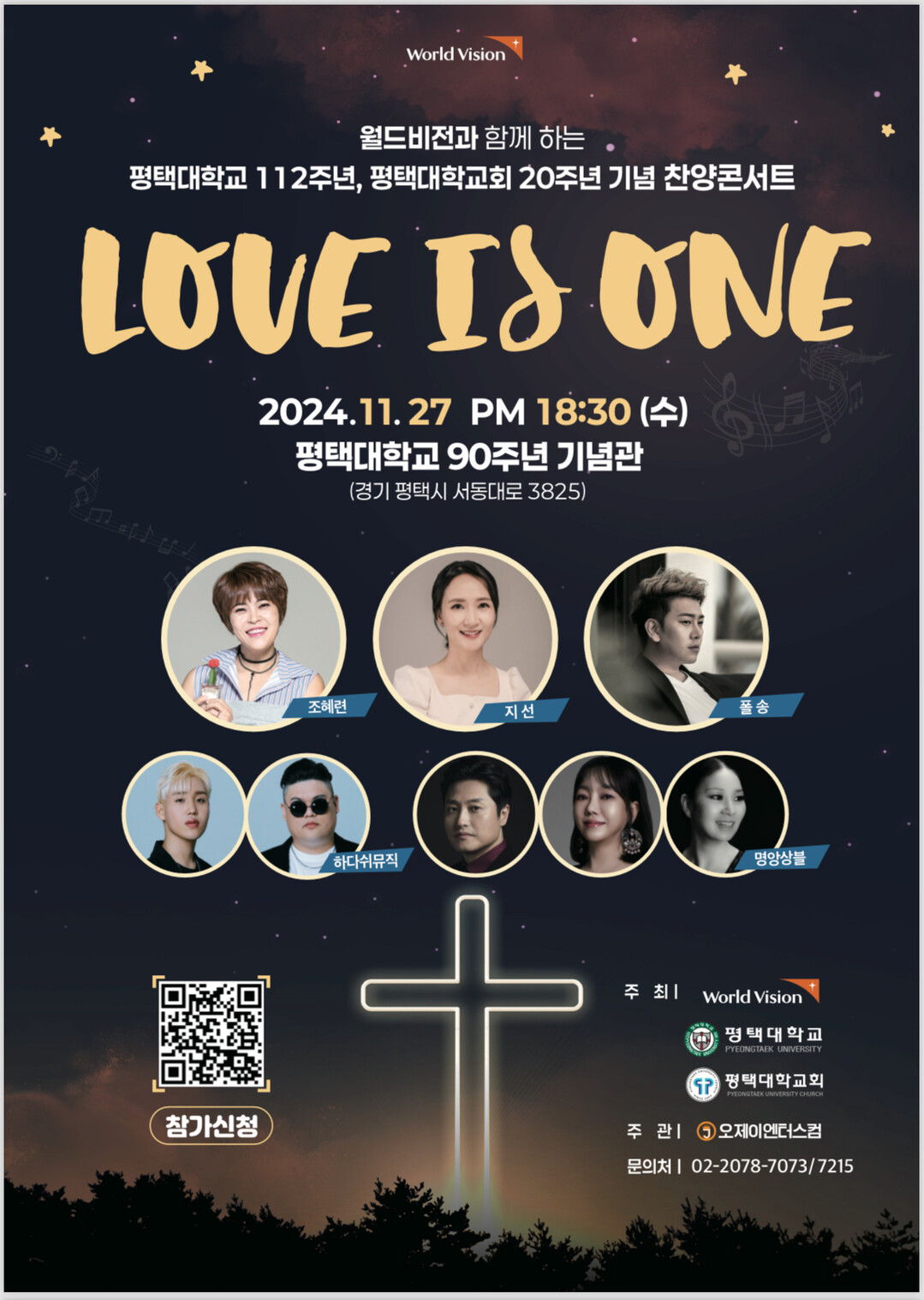 한편, 11월 27일 저녁에는 월드비전과 함께하는 찬양콘서트 'LOVE IS ONE'이 평택대 90주년기념관에서 열린다.