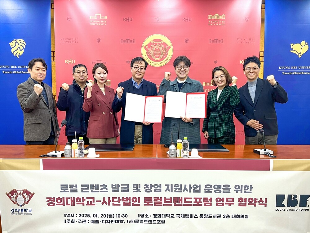 [대학저널 온종림 기자] 경희대학교 예술·디자인대학과 (사)로컬브랜드포럼(이사장 홍주석, 고선영)이 창업과 글로컬 가치 창출을 위한 업무 협약을 20일(월) 체결했다. 이번 협약은 지역과 대학이 협력해 창업 생태계를 활성화하고, 지속 가능한 발전을 도모하기 위해 진행됐다. 협약식에는 경희대 김진오 예술????디자인대학 학장, 박상희 로컬콘텐츠중점대학 사업단장, (사)로컬브랜드포럼 홍주석 이사장 등이 참석했다.