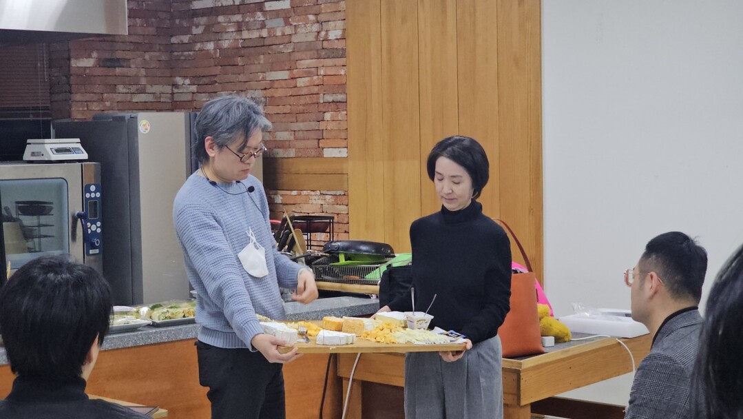 이번 특강에서는 와인과 치즈를 주제로 와인은 머드하우스 소비뇽블랑, 킹스그로브 나파벨리 까쑝 2종류, 치즈는 에쁘아스, 파베 다피누아, 랑그르, 블루치즈 등 다양한 종류의 치즈를 준비해 정보 제공과 시식 등이 이어졌다.