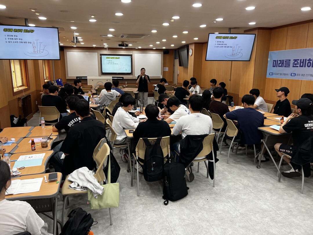 이번 진로 캠프에서 직업기초소양 함양 및 직장 적응력 강화를 목적으로 ▲공동체 의식과 직업윤리 ▲AI시대에 통하는 소통 방법 ▲프로 신입러의 직장 예절 특강을 제공하였다.