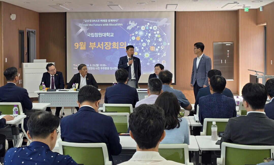 국립창원대가 ‘2024년 9월 부서장회의’를 사천우주항공캠퍼스 예정지인 사천 산업단지복합문화센터에서 개최했다. 사진=국립창원대 제공 |