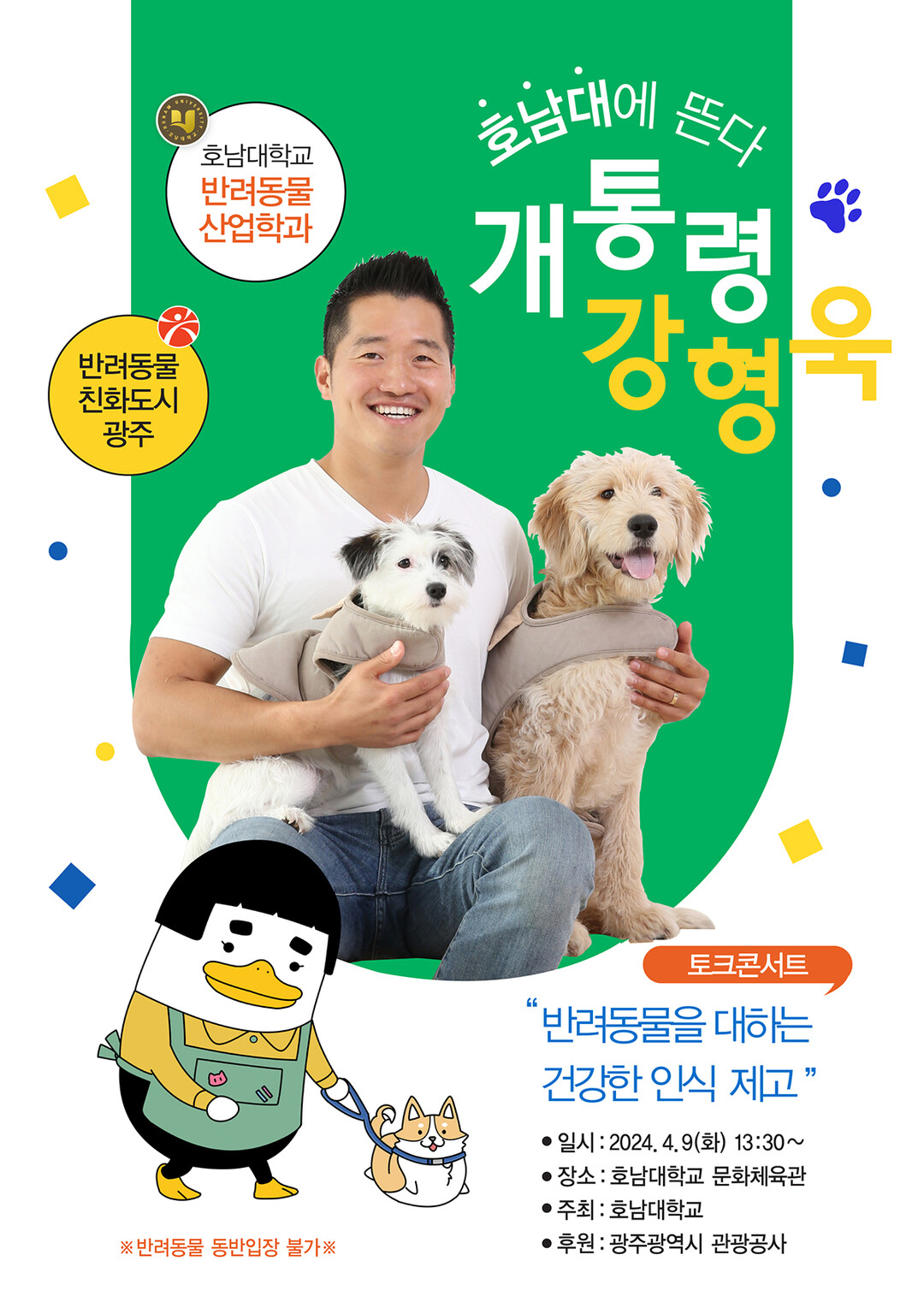 강형욱 훈련사 특강은 호남대 학생뿐 아니라 일반 시민 누구나 참여(선착순 1,500명)할 수 있다. 단 실내 행사인 만큼 반려견 동반자는 입장할 수 없다.