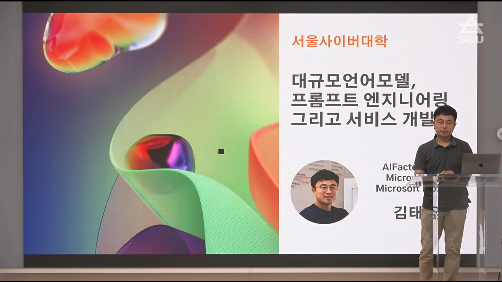 이번 특강은 ‘대규모언어모델, 프롬프트 엔지니어링 그리고 서비스 개발’이라는 주제로 이제 우리의 세상을 바꿔 놓을 ChatGPT에 대한 깊은 이해와 어떻게 하면 십분 활용할 수 있을지에 대한 고민 방향을 안내해주는 내용이었다.