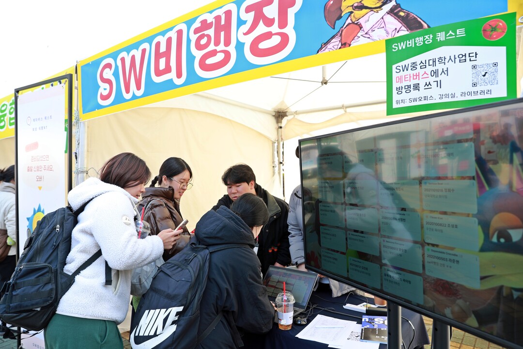 이번 행사는 SW중심대학사업단의 지난 1년 성과를 공유하고 소프트웨어(SW) 가치를 확산하기 위해 마련됐다. 2022년 ‘놀’, 2023년 ‘잇’에 이어 올해는 ‘터’를 주제로 열렸다. SW 성과물을 마치 ‘놀이터’처럼 즐기도록 하기 위한 취지이다. 이를 위해 메타버스 게임 ‘동물의 숲’을 테마로, 전시와 이벤트가 어우러진 다양한 부스를 구성했다.