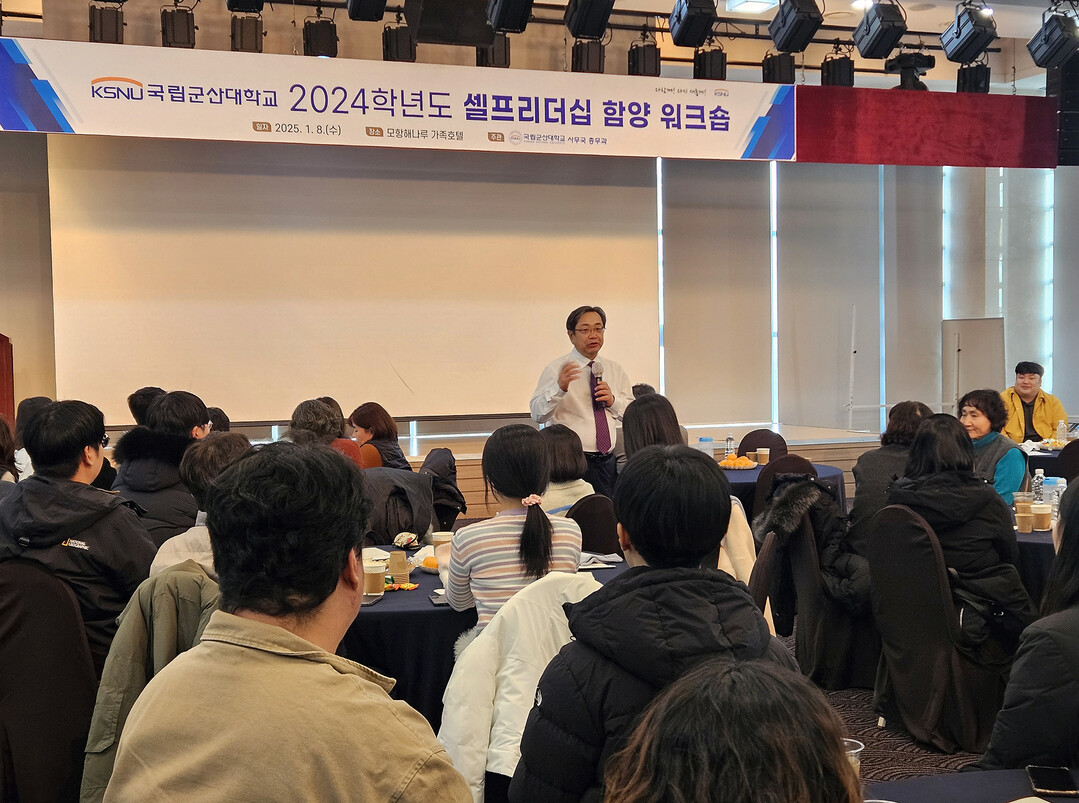 [대학저널 이선용 기자] 국립군산대학교는 을사년 새해 2025년을 맞이하여 직원들의 리더십 강화를 위해 1월 8일 모항해나루 가족호텔(전북특별자치도 부안군 소재)에서 군산대 구성원 자신이 스스로를 관리하여 이끌어 가는 리더십을 향상시키기 위한 ‘2024학년도 셀프리더십 함양 워크숍’을 개최했다고 9일 밝혔다.